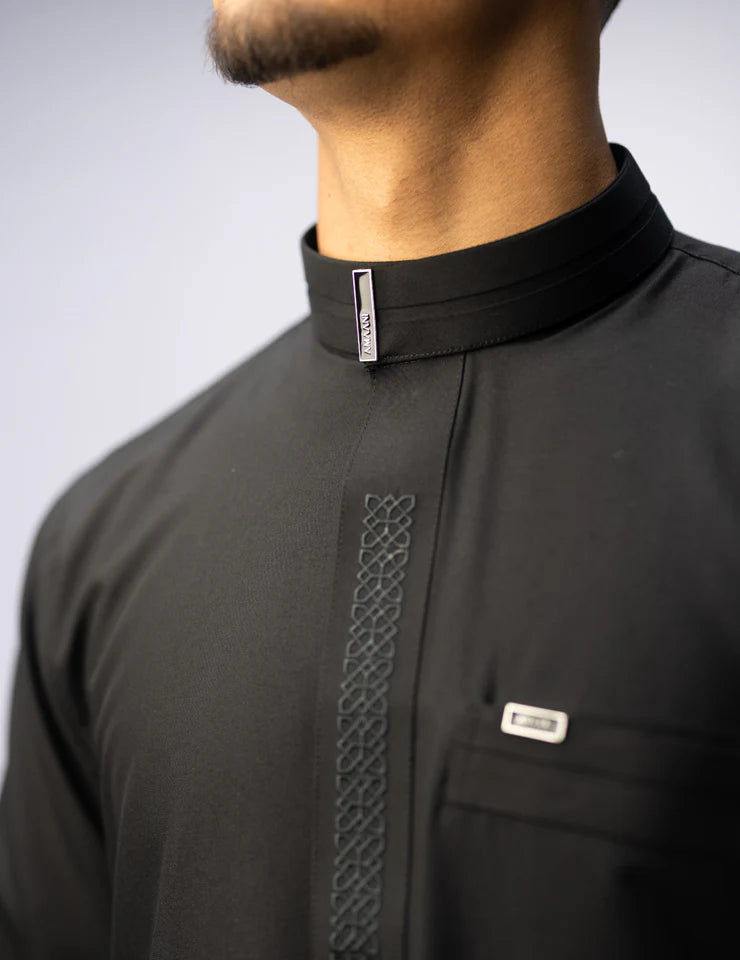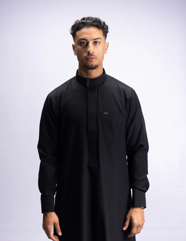 Fit: Tailored for a sleek, polished silhouette. Elevate your wardrobe with the Amaani Sultan Thobe—where every detail speaks of sophistication.