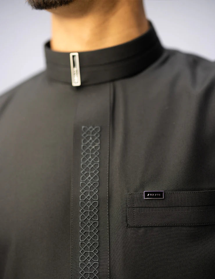 The Amaani Sultan Thobe elevates royal inspiration to new heights of sophistication. As a refined interpretation of our beloved Royalty design, this masterpiece proves that true luxury lies in restraint. The subtle tonal embroidery creates depth without ostentation, offering a modern take on regal elegance for the discerning gentleman.